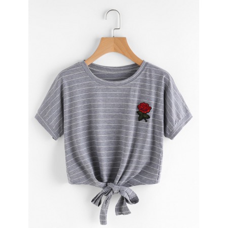 Summer New Style Rose Embroidery Lace All-Match Short T-Shirt Women