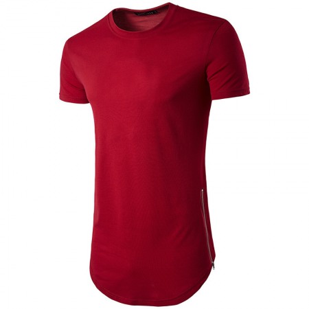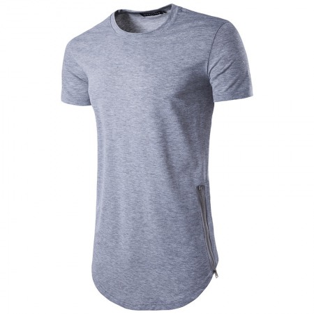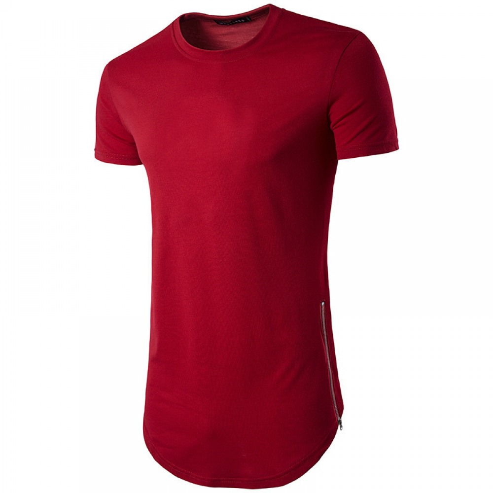 Men's Fashion Style Double Zipper Long Round Neck T-Shirt Multicolor Plus Size Short-Sleeved T-Shirt