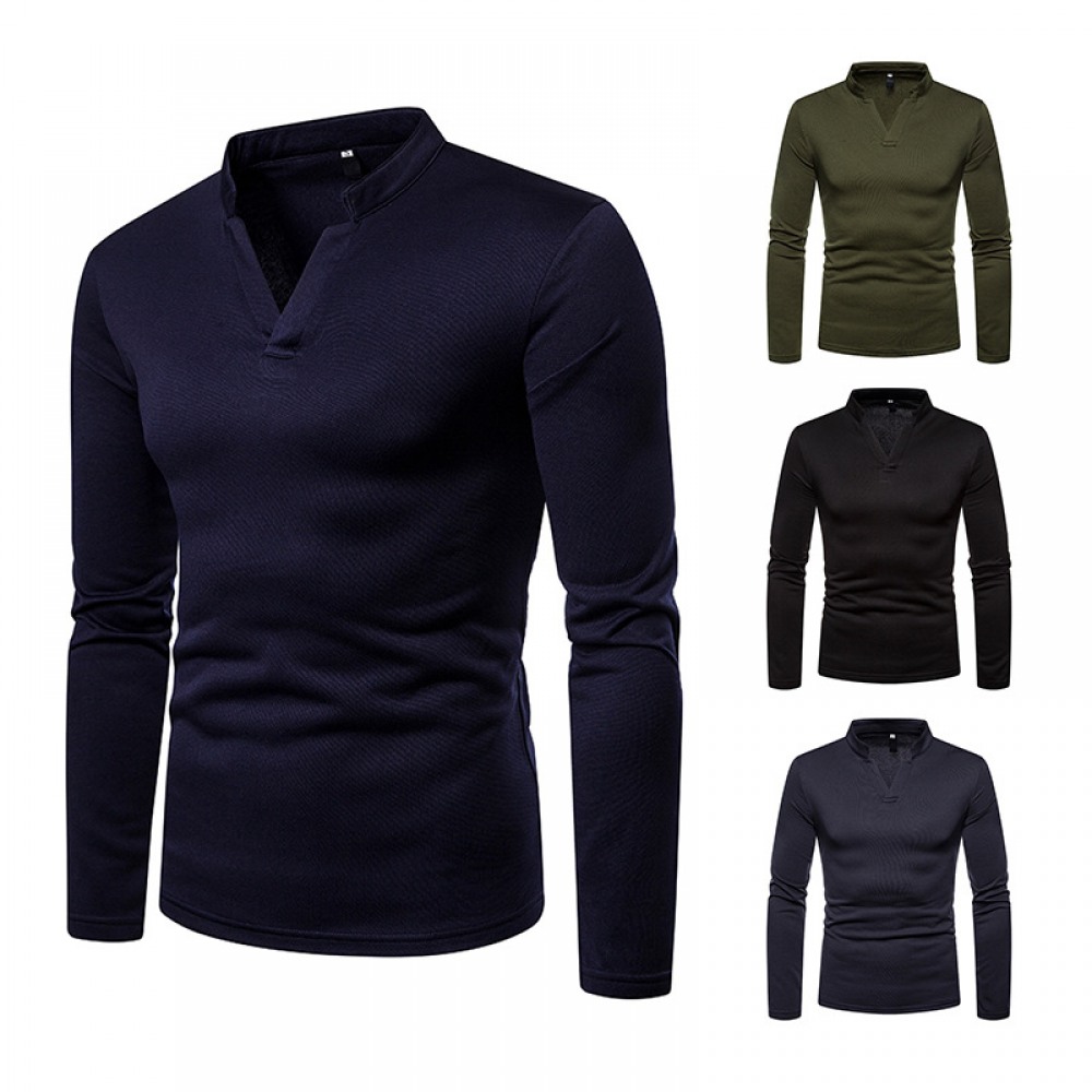 Men's Plus Size Plus Velvet Warm Henley Collar Long-Sleeved T-Shirt Bottoming Shirt