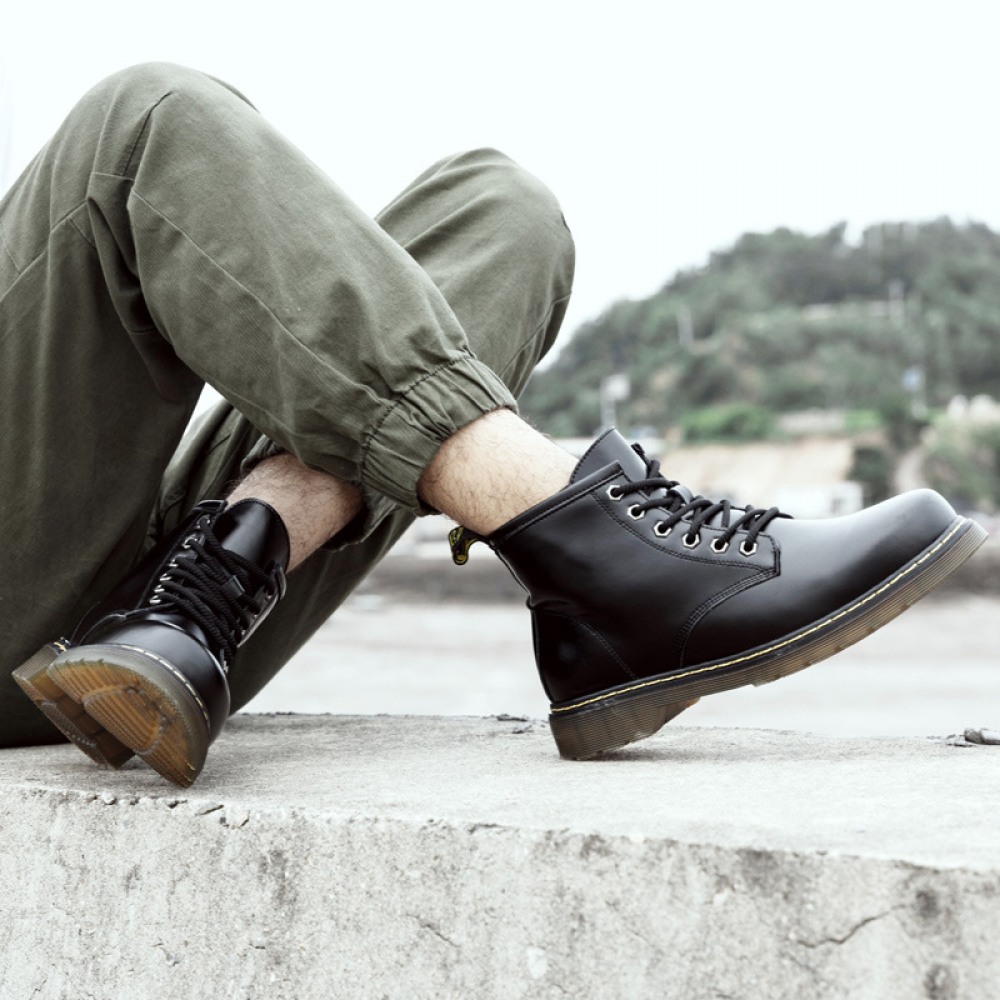 Martin Boots Men's Autumn New Leather Boots Casual Mid-Cut Tooling Boots High-Top Mens Shoes
