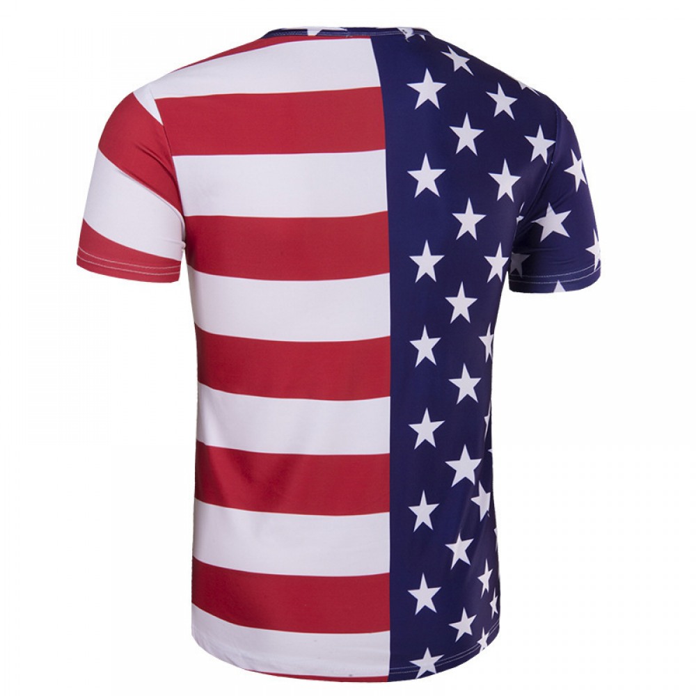 New Machi Striped Stars 3D Printing Men's Stitching Short Sleeve T-Shirt