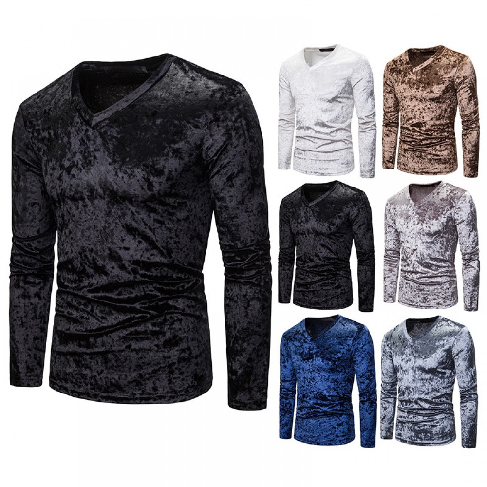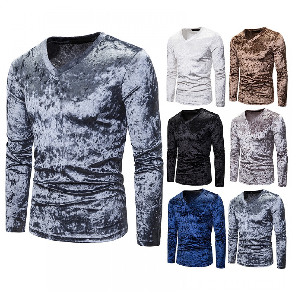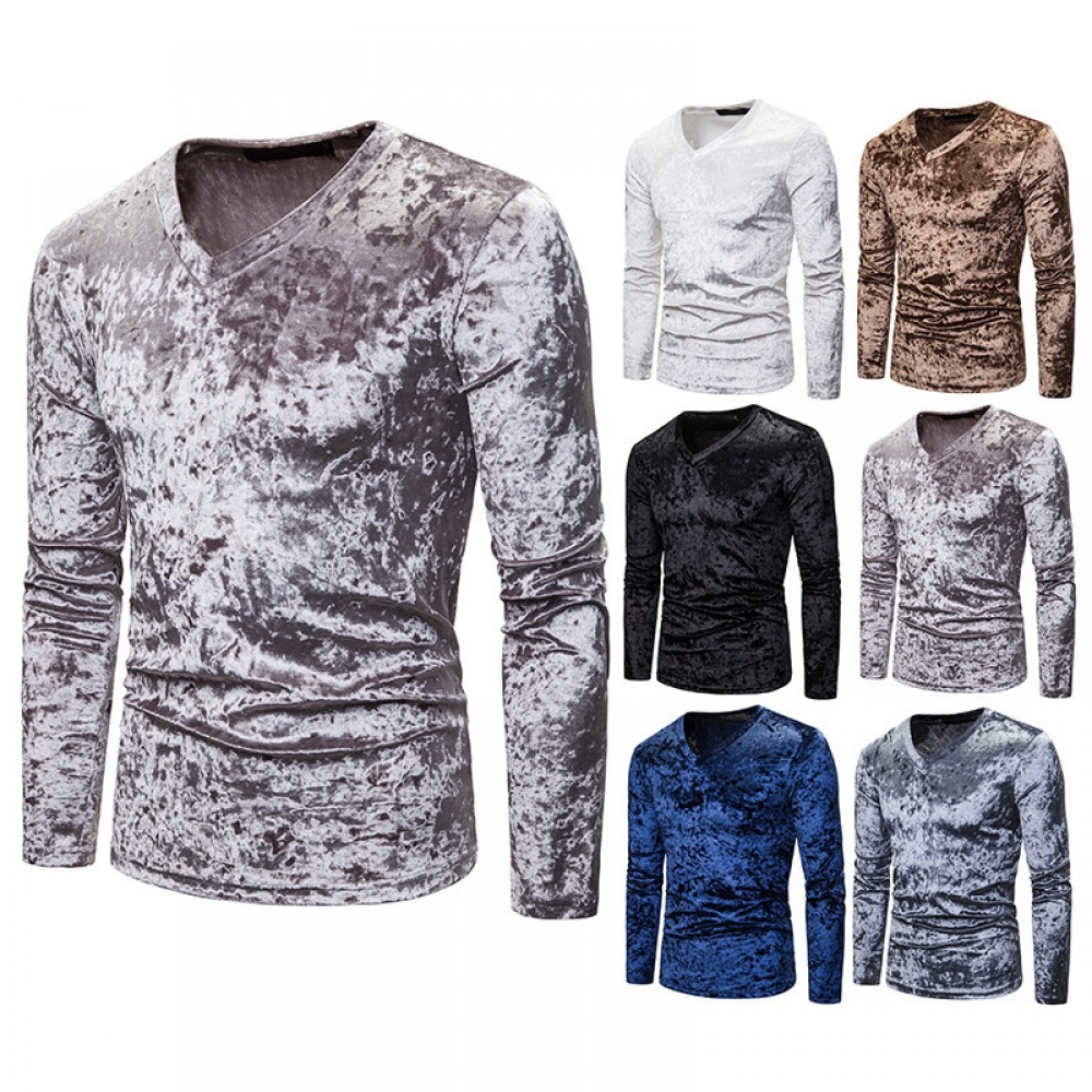 New Men's Diamond Velvet V-Neck Multicolor Long Sleeve Slim T-Shirt