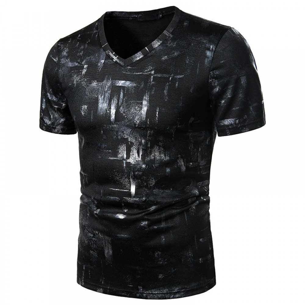 Summer Men's Nightclub Bar Fashion Casual Hot Stamping Printing Short-Sleeved Printed T-Shirt