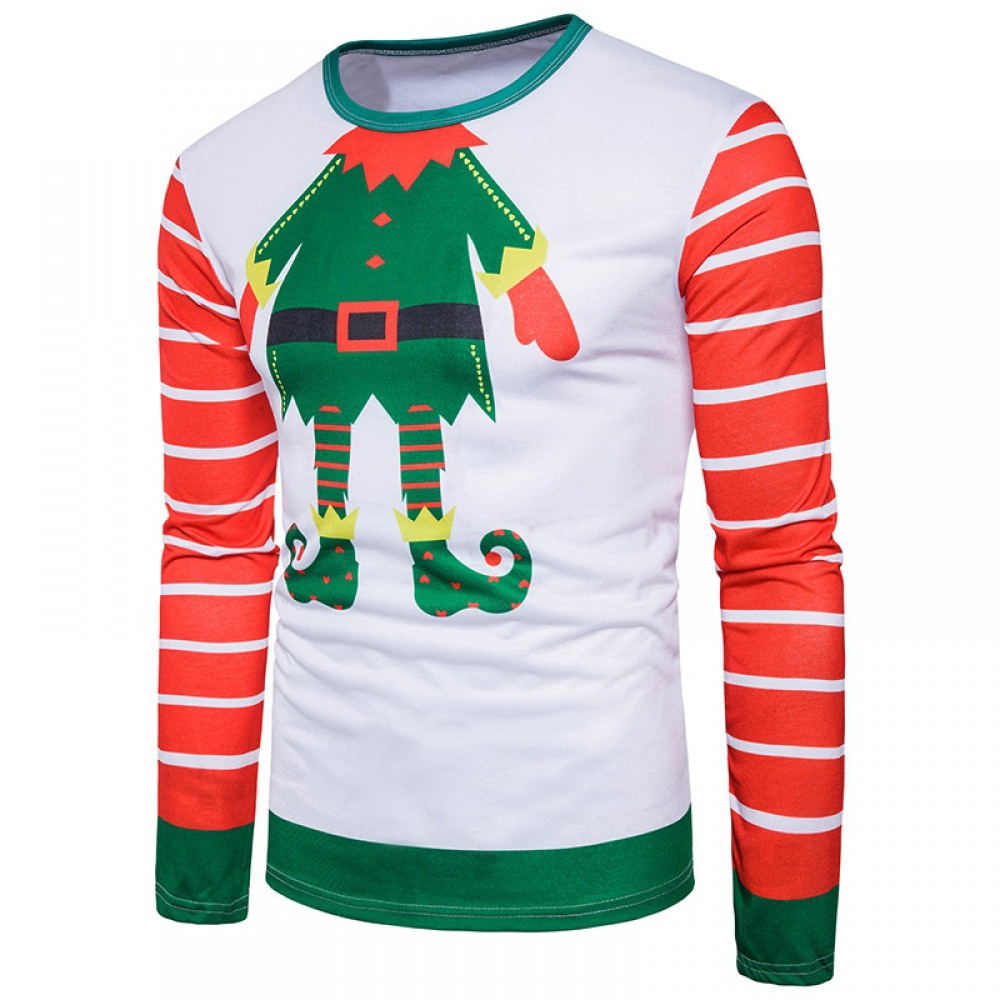 New Style Men's Personality Christmas Elk 3D Printing Round Neck Long Sleeve T-Shirt